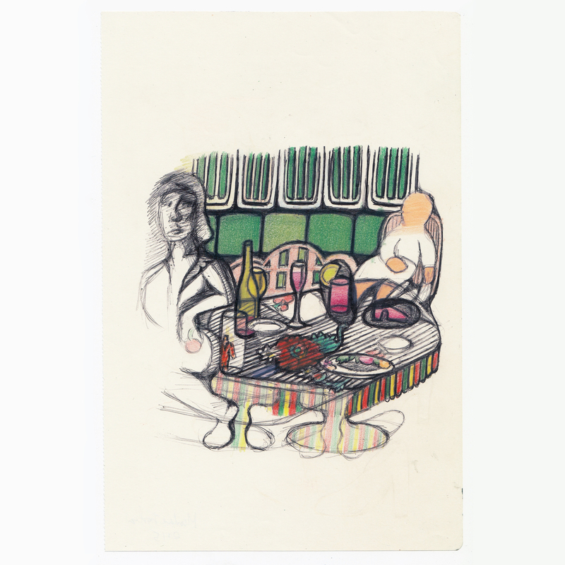 Colored pencil and pen on paper
